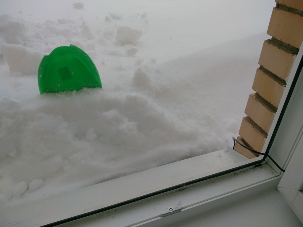 Датчик не "висит". Его завалило снегом во время снегопада 25 марта. Крыша - стратегический объект, туда так просто не попасть для расчистки датчика. Ждём, когда само растает. Недолго осталось - пару дней подождать. (abc) |